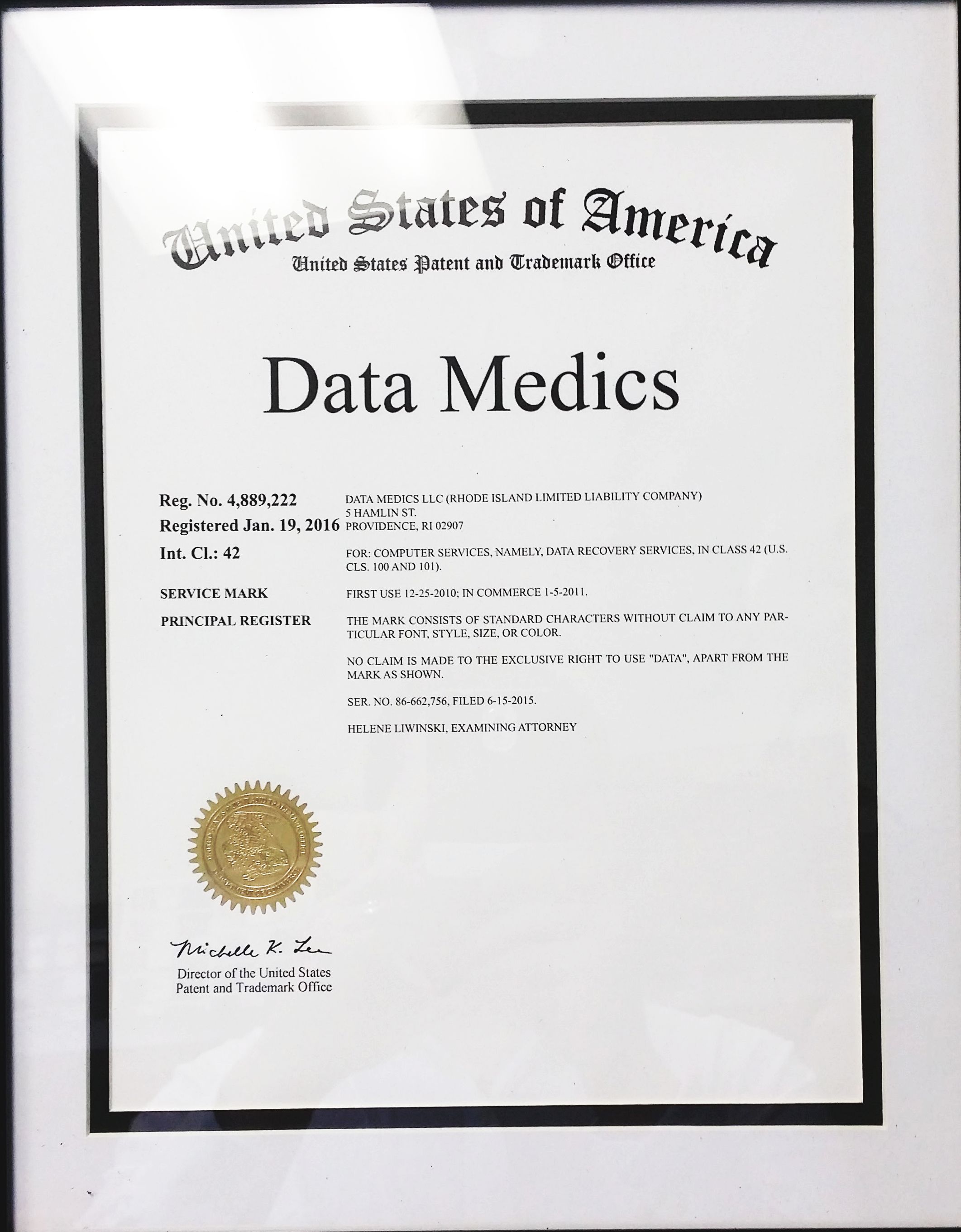 Data Medics LLC of Providence, RI is now the holder of a registered trademark for the name “Data Medics” ®. Since 2011 Data Medics has been providing professional data recovery services from failed hard drives and RAID arrays under the business name.