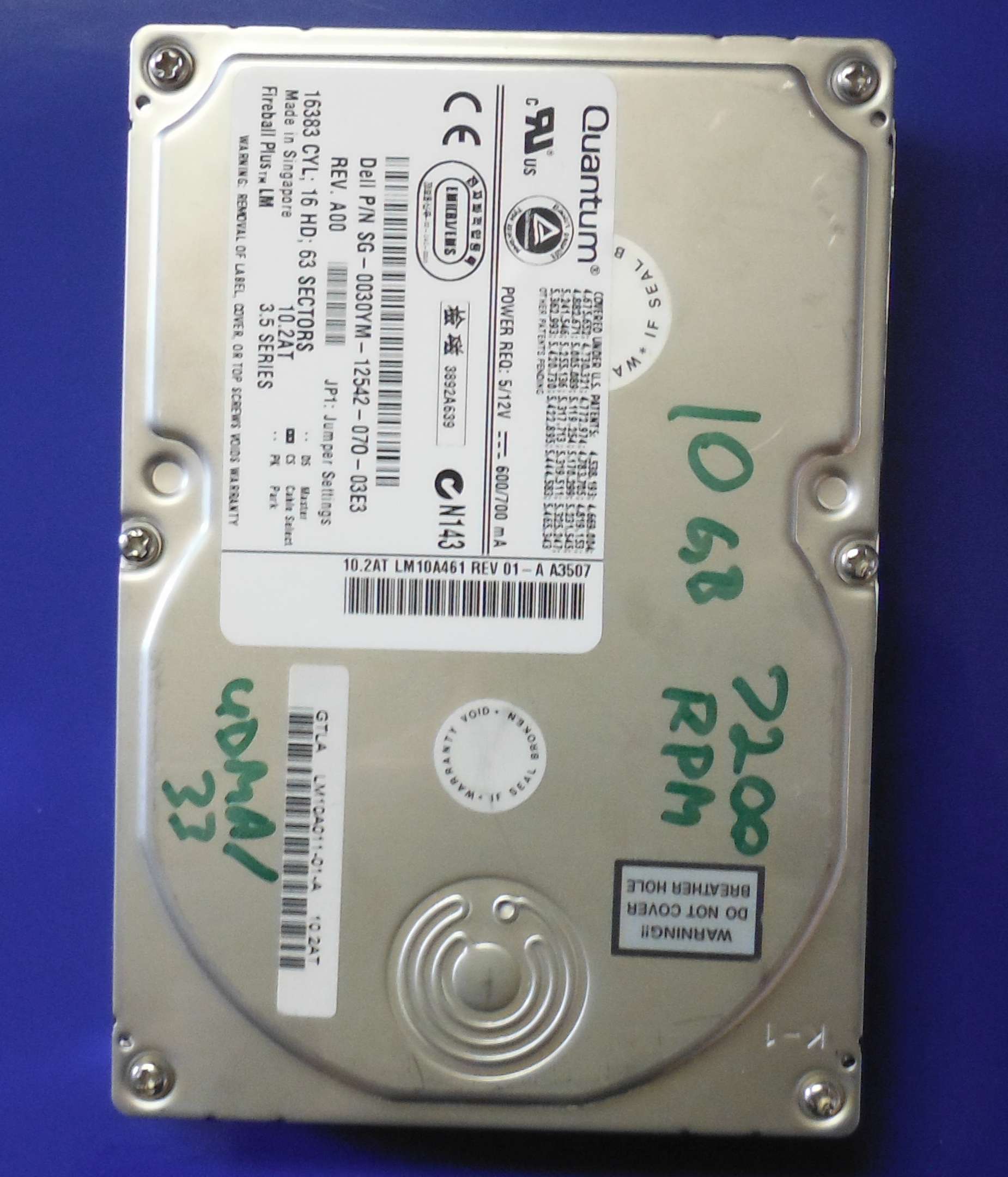 All drives are in used condition and have been tested for basic operation of the PCB and read/write heads only.  They may contain reallocated / bad sectors, or S.M.A.R.T. errors in some cases.  Returns of donor hard drives are only accepted if the main components such as PCB or preamp have failed.
