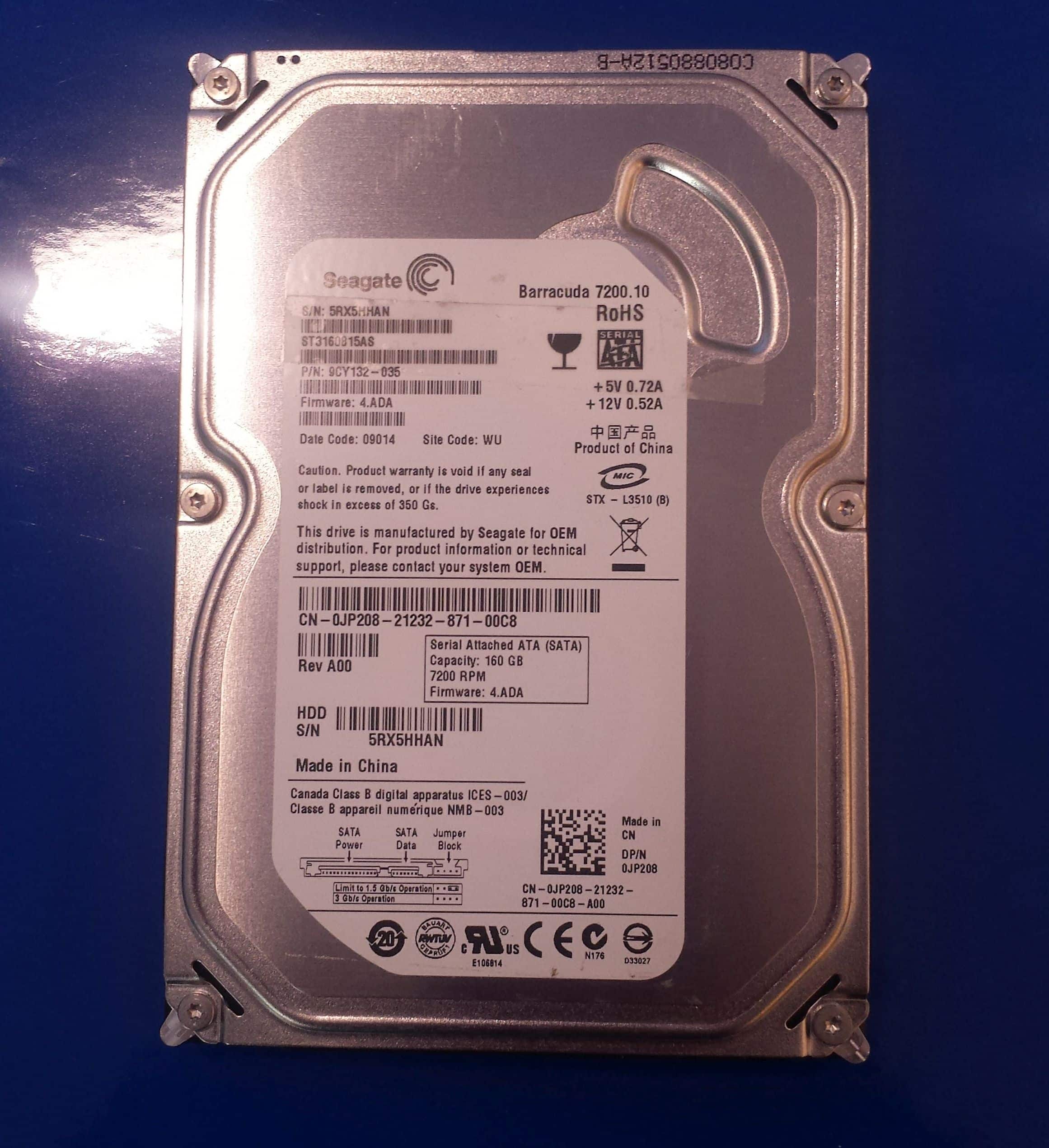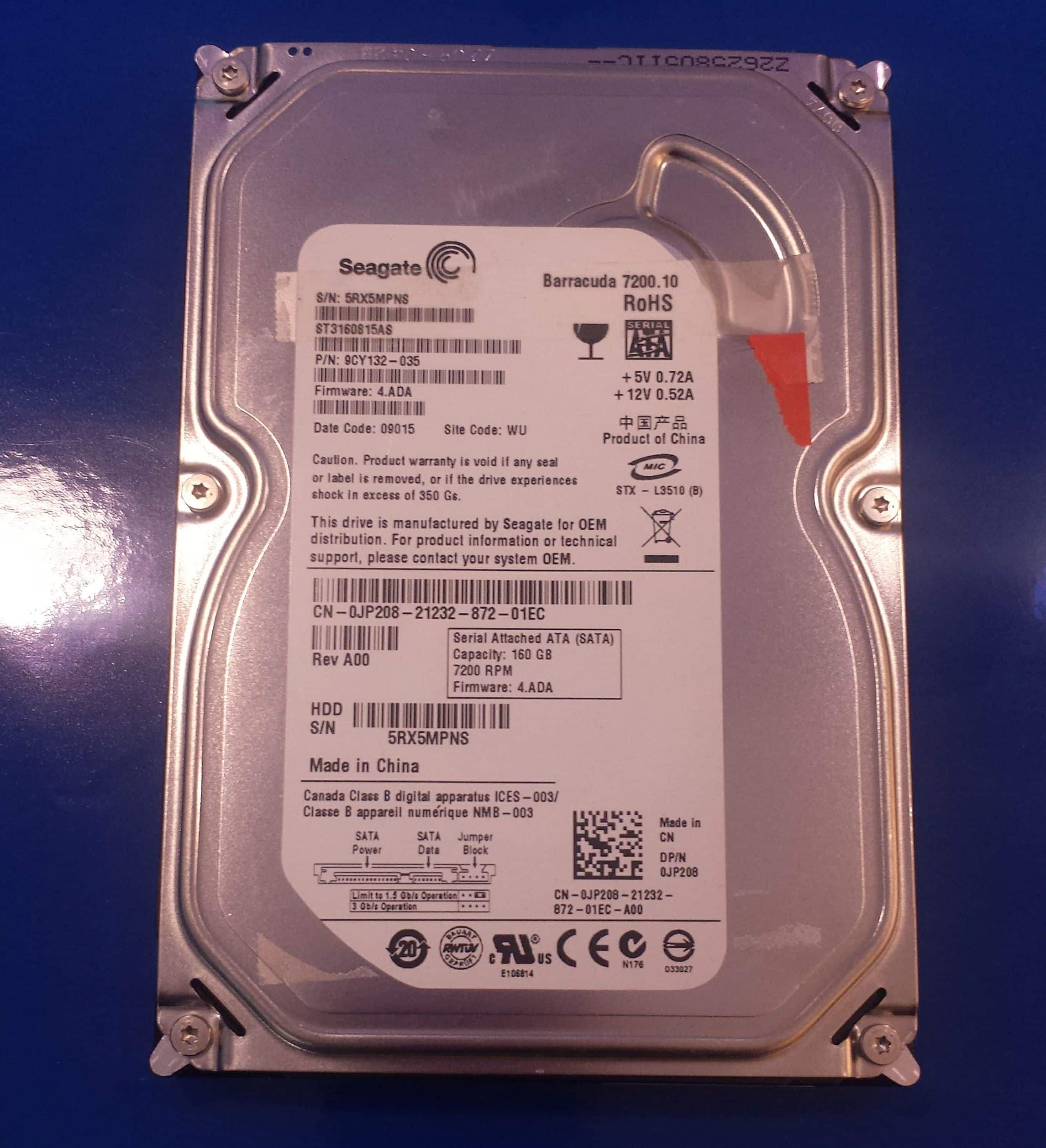 ST3160815AS PN: 9CY132-035 FW: 4.ADA SN: 5RX WU